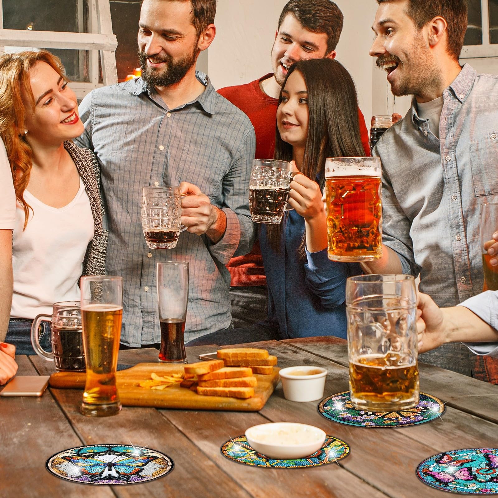 Commodity includes: 8* coasters, 8* cork pads, 1* iron cup holder, 1* point drill kit, 1 set of drill bag