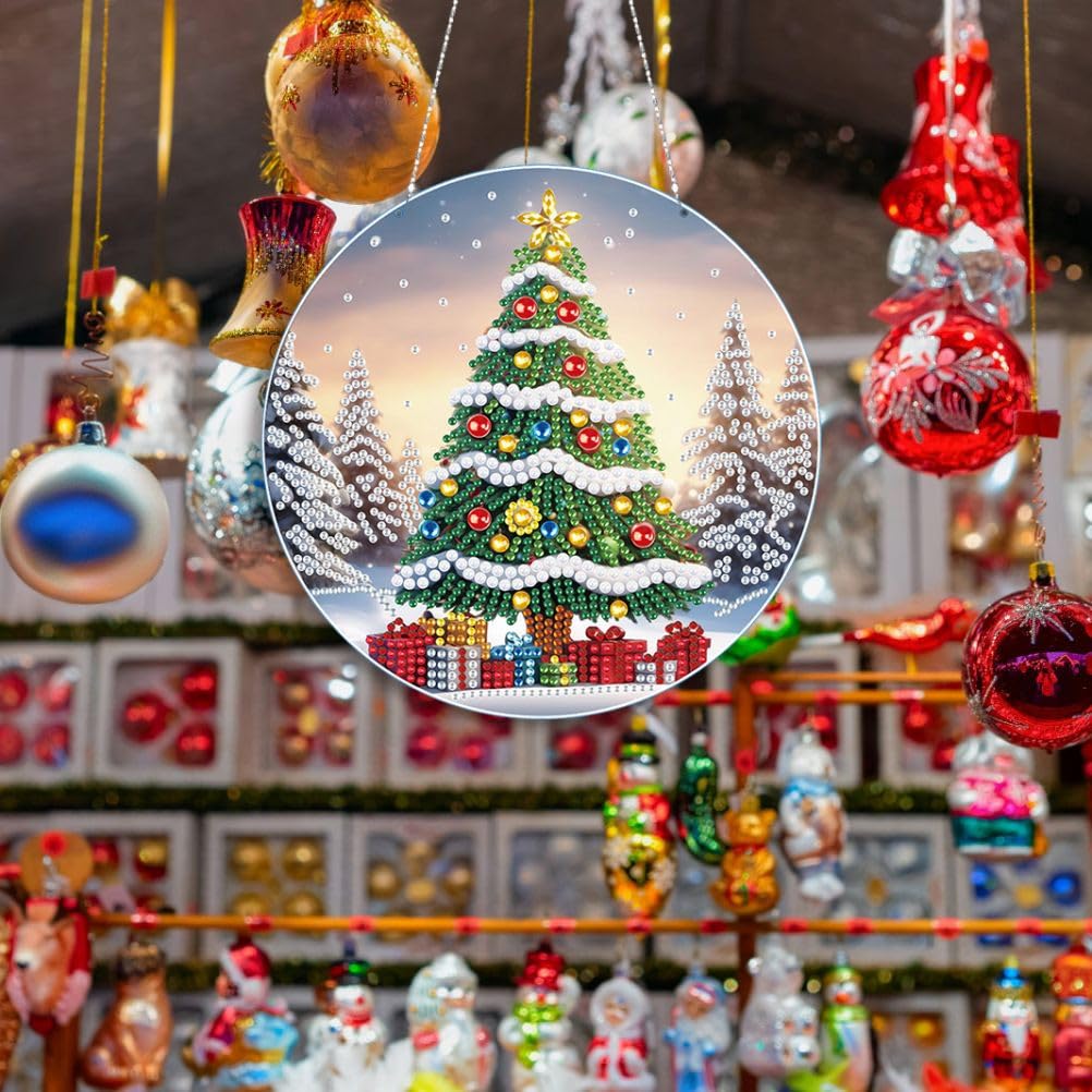 Details: Product name: DIY point drill Round pendant (single side point drill)Christmas tree pendant (double-sided dot diamond)Drill type: bright diamond + special-shaped diamondHanging material: AcrylicProduct size: as shown in the picturePackage size: 19*19cmProduct weight: about 150 gramsProducts include: 1* pendant, 1* chain, 1 set of diamond bag, 1* tool bagDIY Diamond Art Painting production steps:1. Open the package and check whether the Diamond Art Painting tools are complete;2. According to the resin diamond color code, choose a color on the plate, if you paste the same color at one time, you can increase the speed;3. Find the corresponding color code on the canvas and start pasting until it is completed;4. After the completion, in order to make the Diamond Art Painting stable, you can take some books and put it on the canvas for a while;5. Finally finished.Notice:This is diy Diamond Art Painting, not finished, you need to finish it by yourself. All products are measured by hand, please allow 1-2cm deviation